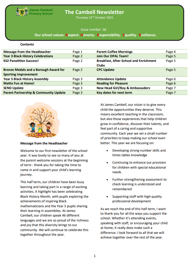 | Email: office@jamescambellprimary.org.uk Phone: 0208 270 4684 | ![]() | ![]() |