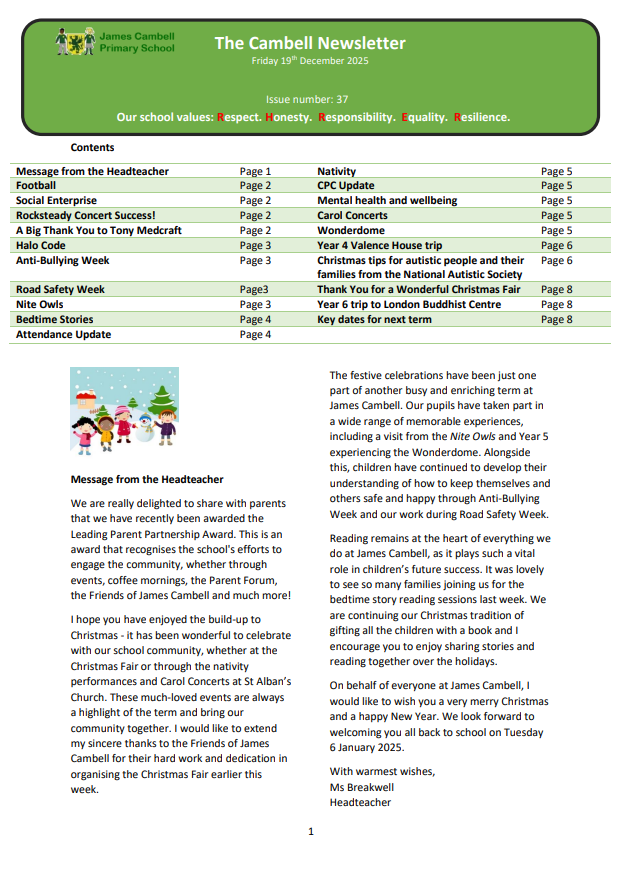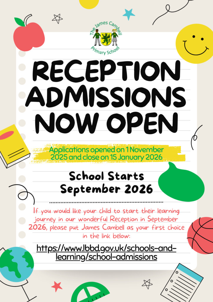 | Email: office@jamescambellprimary.org.uk Phone: 0208 270 4684 | ![]() | ![]() |