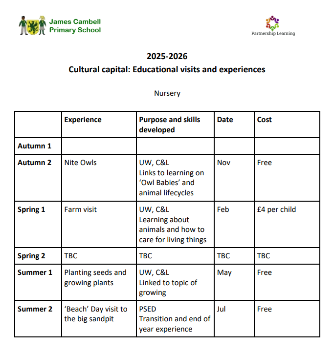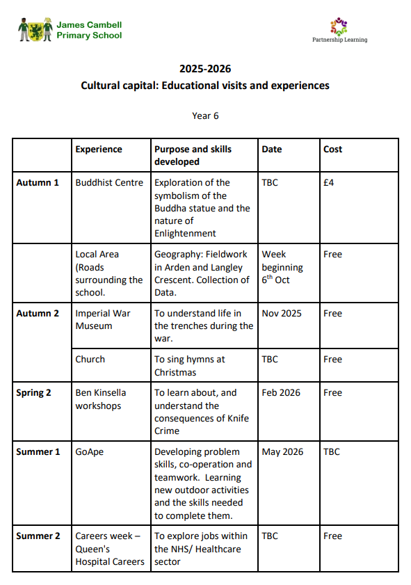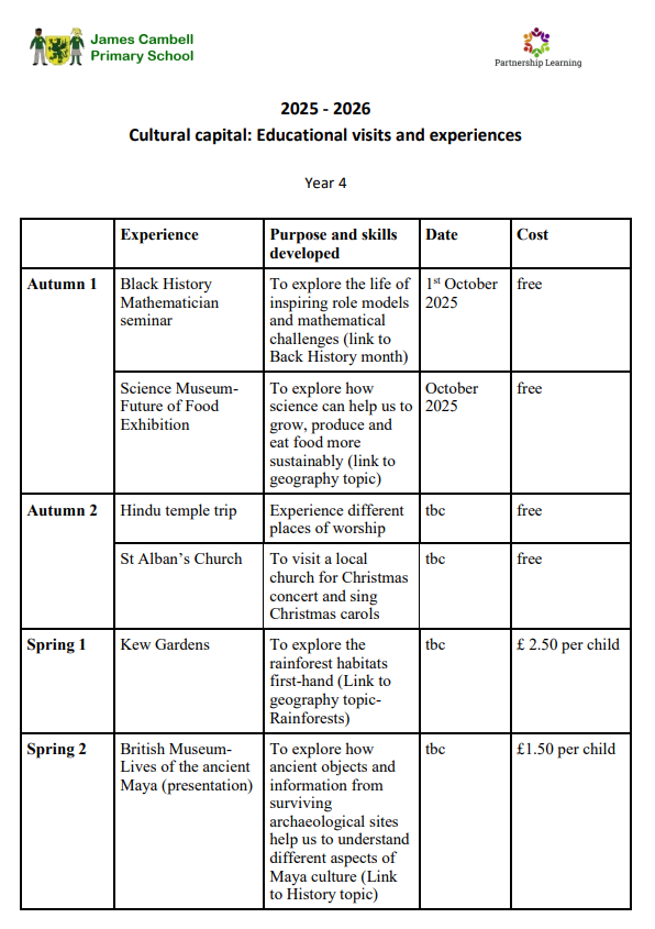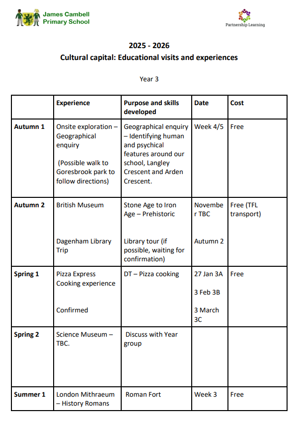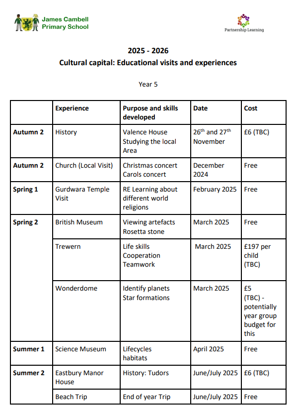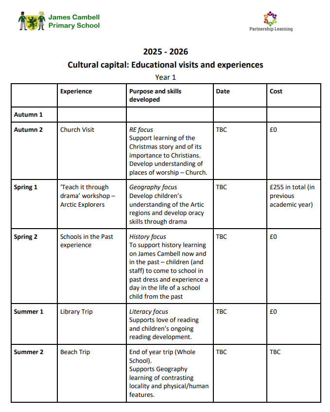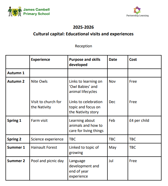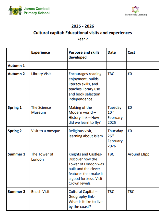 At James Cambell Primary School, we are dedicated to providing your child with opportunities they deserve. We want to help them gain the academic success, build critical thinking skills and develop life skills that will help them blossom into lifelong learners and successful adults. In order to do this, we organise and provide a range of learning experiences and opportunities within our curriculum to help them develop these skills and succeed in all they do. This includes different trips, activity days and workshops. As a school, we need your commitment in helping your child succeed by supporting us with these learning opportunities.
